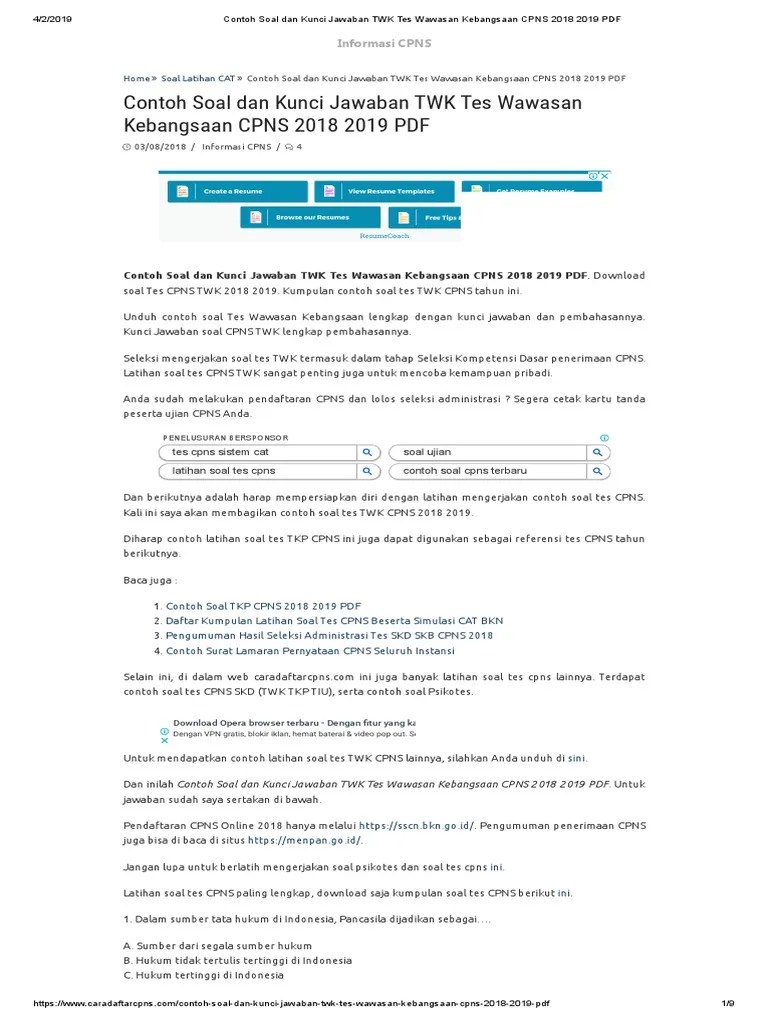 100 soal cpns pdf 2018 dan kunci jawaban nah berikut ini silahkan anda download dan pelajari soal soal cpns 2018 sebagai persiapan dalam mengikuti seleksi tes cpns 2018 yang tak lama lagi akan dilaksanakan. Download soal cpns dan kunci jawaban, download soal cpns, soal cpns pdf, soal tes cpns dan pembahasan pdf, download gratis soal cpns, kumpulan soal cpns dan jawabannya, soal cpns dan pembaha…full description. Soal tkp, twk, tiu dan kunci jawaban unduh disini . Free download soal cpns 2019 dan kunci jawaban pdf. Ujian tulis berbasis komputer (utbk) merupakan tes masuk ke perguruan tinggi. So please help us by uploading 1 new document or like us to download Download soal cpns 20182019 kunci jawaban cat dan pdf lengkap pendaftaran cpns 2018 bukaan di 11 daerah / kabupaten. Sekeleksi kompetensi dasar dalam melamar cpns selalu menjadi hal yang sangat menegangkan. Soal dan jawaban tkd 2018 memudahkan anda menghadapi tes cpns. Penerimaan cpns 2018 akan digelar setelah pemerintah menggodok formasi daerah daerah di indonesia yang diperkirakan akan kekurangan pegawai negeri sipil (pns) sejumlah 200rb dikarenakan pensiun. Soal dalam berlatih untuk menghadapi tes cpns dibutuhkan untuk mematangkan kesiapan dalam menghadapi ujian.